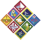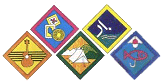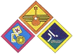abaixo da Insígnia de Progresso. Cada elemento usa apenas as insígnias das Secções de que tenha feito a Promessa.